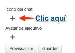 Si se desea incorporar un ícono estático (imagen) al ícono del chat, se deberá ir a la parte inferior de las opciones de edición del widget y hacer clic en el "+" que está en la opción Icono del chat , automáticamente se desplegará un buscador y podrá seleccionar la imagen que se desea utilizar.